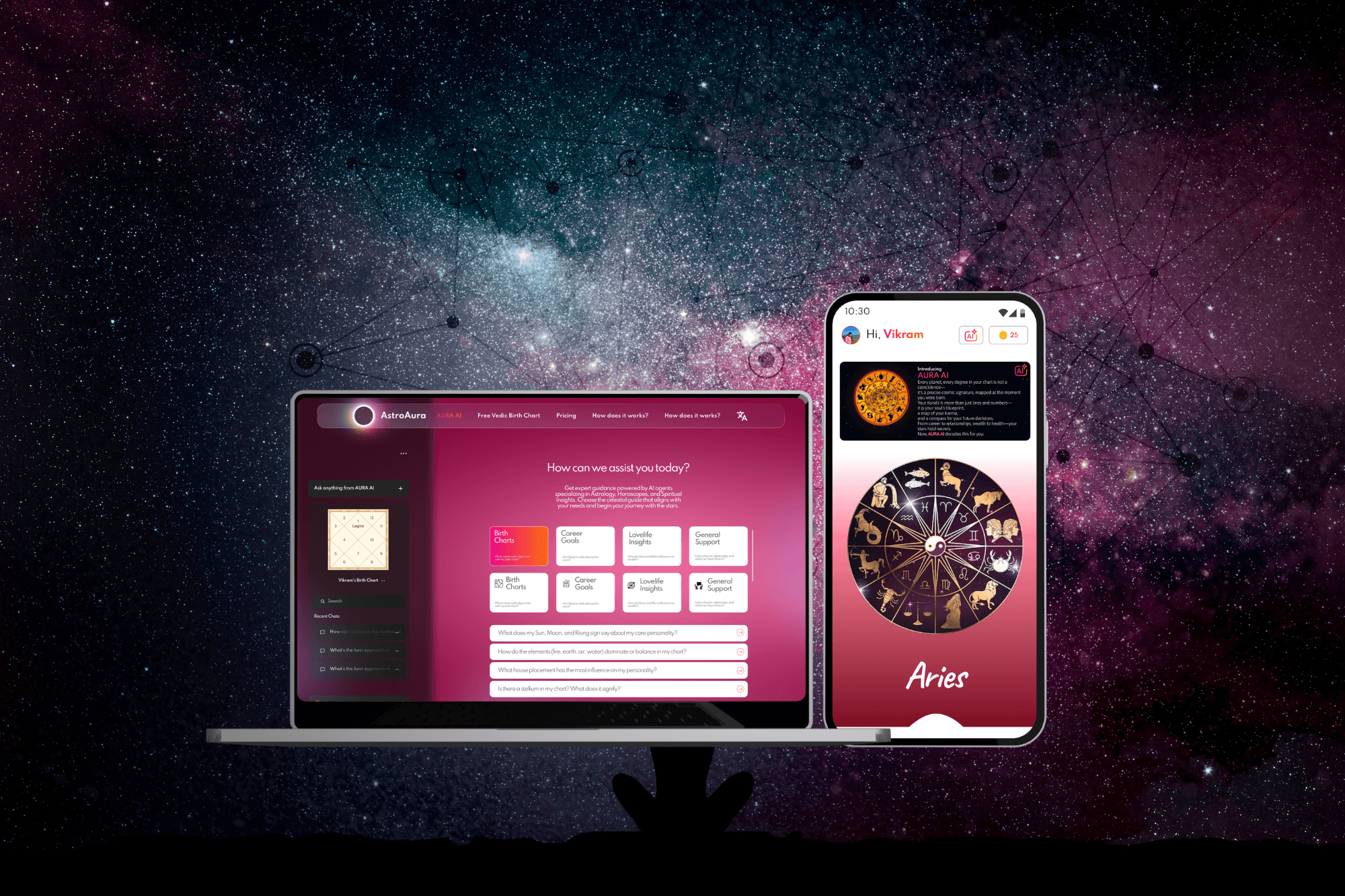 AstroAura is a next-generation astrology platform dedicated to helping individuals unlock the mysteries of their past, present, and future. Blending ancient Vedic and Western astrological wisdom with cutting-edge digital experiences, AstroAura offers deeply personalized horoscopes, kundli readings, compatibility analyses, and life guidance sessions.